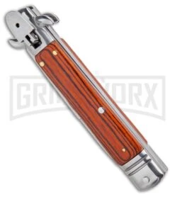 Milano 8.5″ Lever Lock Automatic Knife Rosewood – Bayonet Satin
