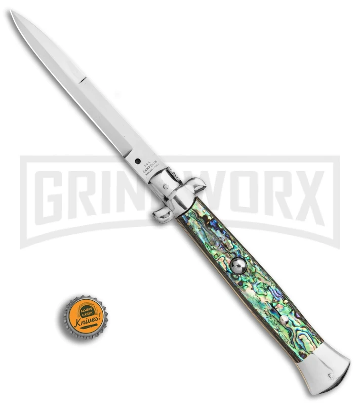 A.G.A. Campolin 9″ Maltese Cross Abalone Stiletto Automatic Knife – Bayo Satin
