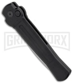 The Boker Plus Strike has been converted to a push button automatic knife. It’s sleek design lends itself to everyday carry comfort, with a front-mounted safety for protection against misfiring the blade. Black textured aluminum scales are fastened to a sturdy stainless steel frame, which has an open-build for simple cleaning and maintenance. The deep carry pocket clip is reversible for tip-up or down orientation. Rounding out the package on this Strike Auto is a black coated D2 drop point blade for a wide range of chores.