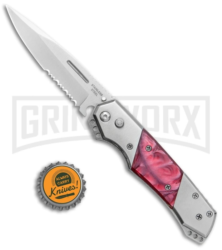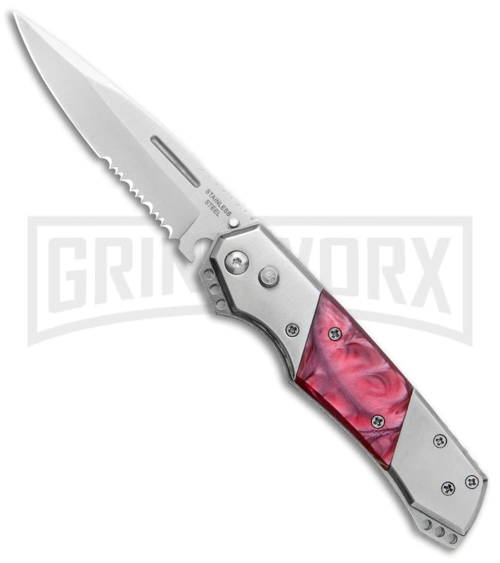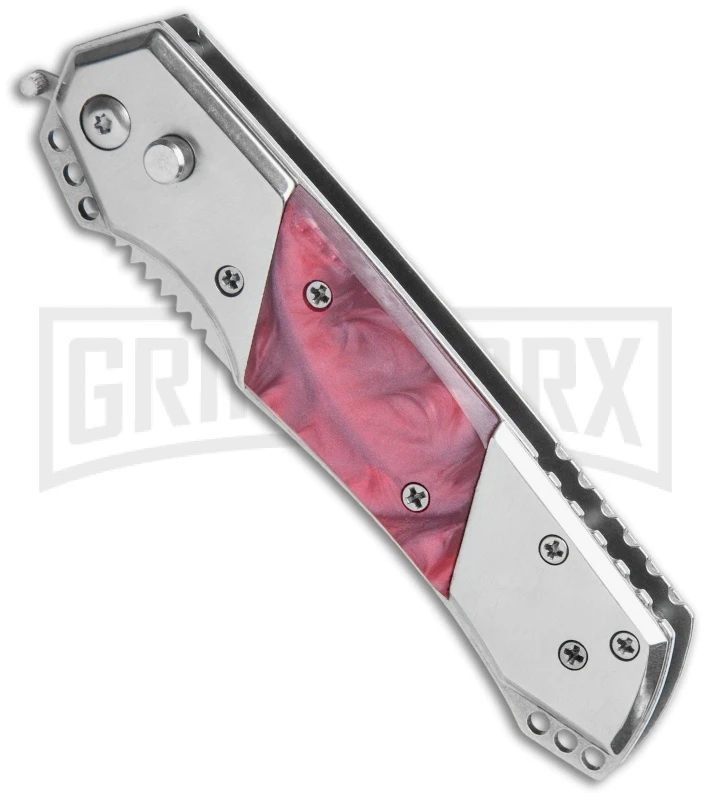 Super Knife Croc Automatic Knife Stainless W/ Red Marble Inlay – Satin Serr